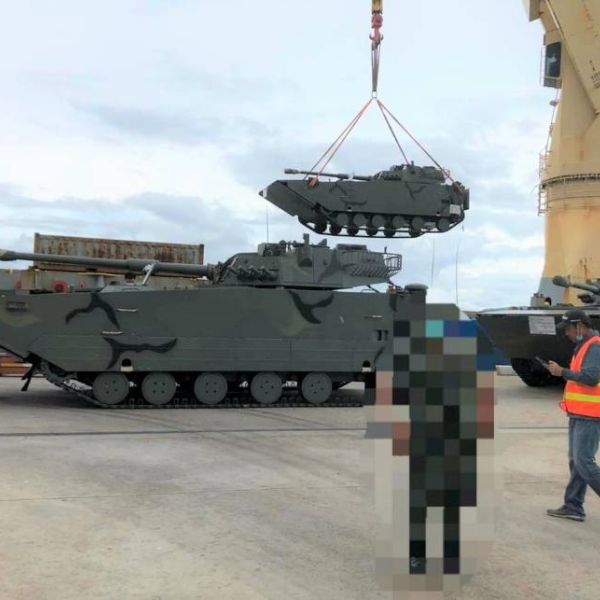 A picture published in Thai online social media on May 28, 2021, shows Norinco VN16 amphibious light tanks being unloaded at Sattahip naval base (C...