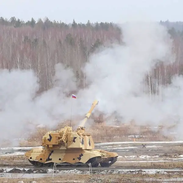 Rostec has demonstrated the joint operation of Msta-S self-propelled howitzer, modernized for NATO-standard 155 mm caliber, and Orlan-10E reconnais...