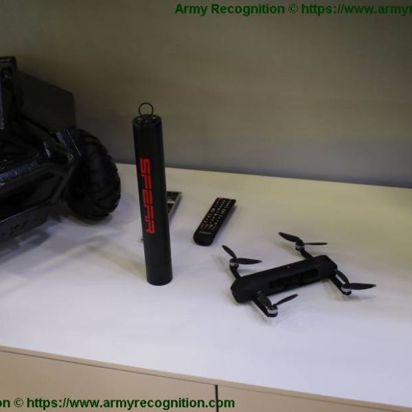 At ExpoDefensa 2021, a defense and security exhibition in Colombia, Israeli Company IMCO presents SPEAR Ninox 40 micro-tactical drone that can be l...