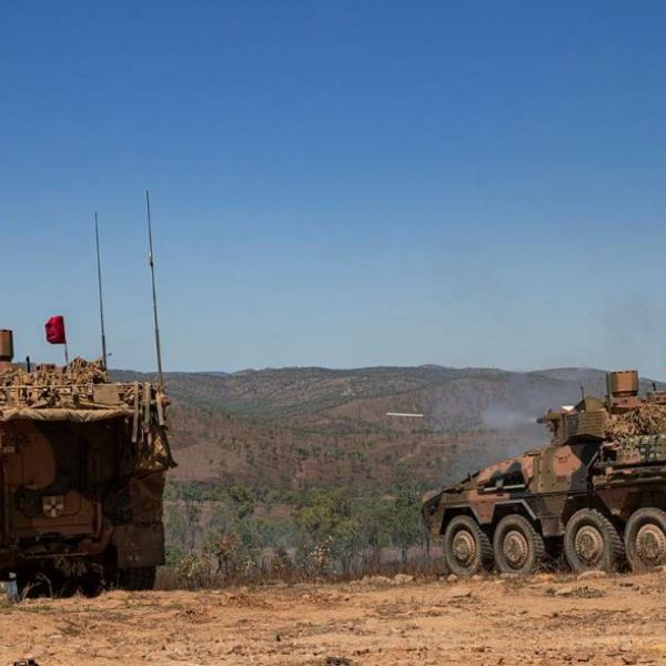 Australian soldiers send rounds down range on Boxer live fire exercises