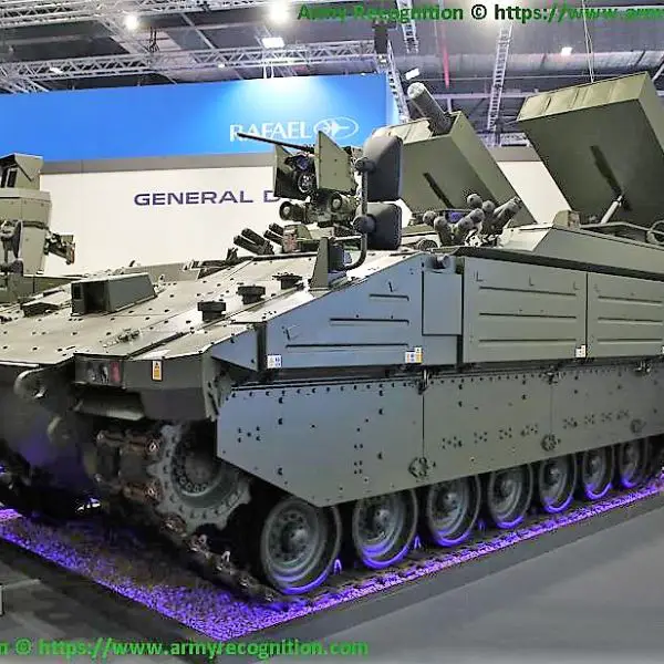 General Dynamics displays the anti-tank missile variant in the AJAX family of tracked armored vehicles at DSEI 2021, International Defense Exhibiti...