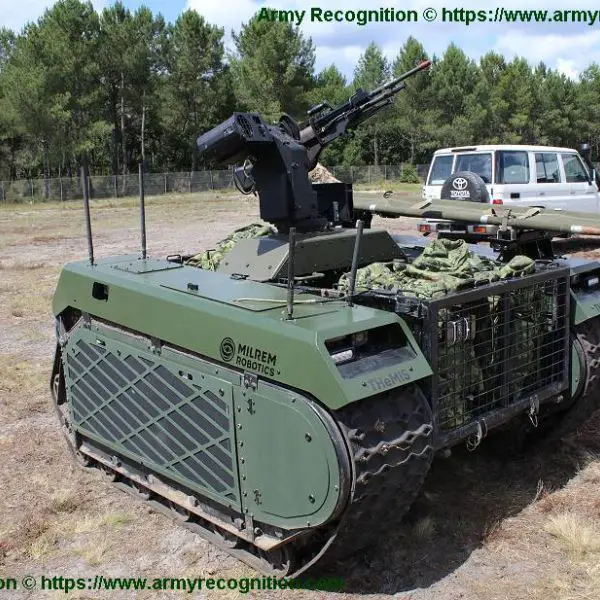 The European leading robotics and autonomous systems developer and system integrator Milrem Robotics demonstrates its THeMIS Combat Support tracked...