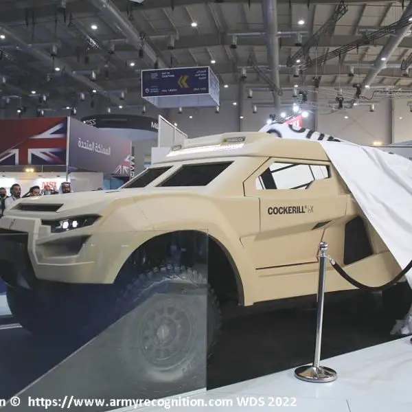 Belgian company John Cockerill Defense unveils its new 4x4 combat vehicle called Cockerill i-X at WDS (World Defense Show) 2022 defense exhibition ...