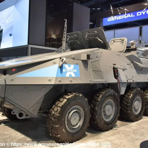 At AUSA 2022 GDLS presents StrykerX technolgy demonstrator of future wheeled armored vehicle