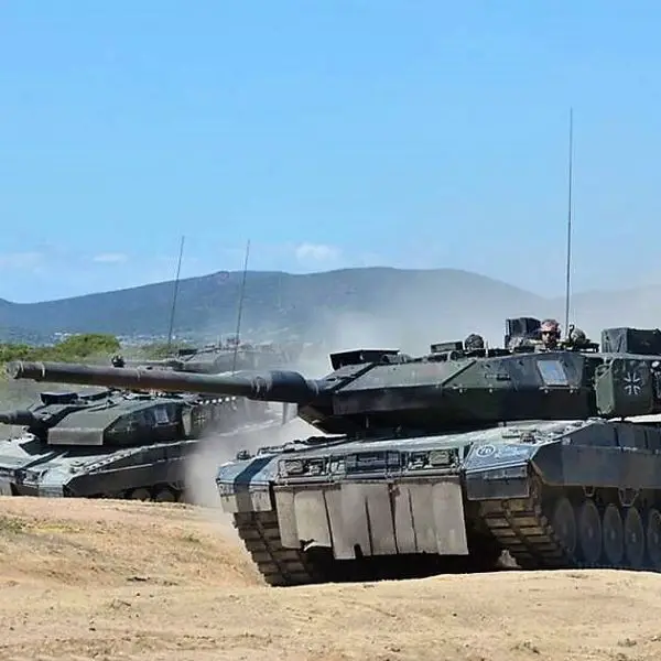 German army Leopard 2A7V main battle tanks of Panzerbataillon 393 armor battalion conduct first tactical training of the Capo Teulada Training Area...
