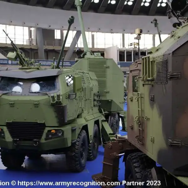 At the Partner 2023 exhibition, Yugoimport, a Serbian company, is showcasing various models of its Nora B-52, a 155 mm self-propelled howitzer fami...