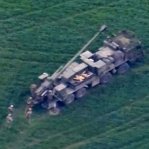 An Ukrainian observation drone has spotted the Russian self-propelled artillery system 2S43 Malva in the Belgorod region. The Malva came out of dev...