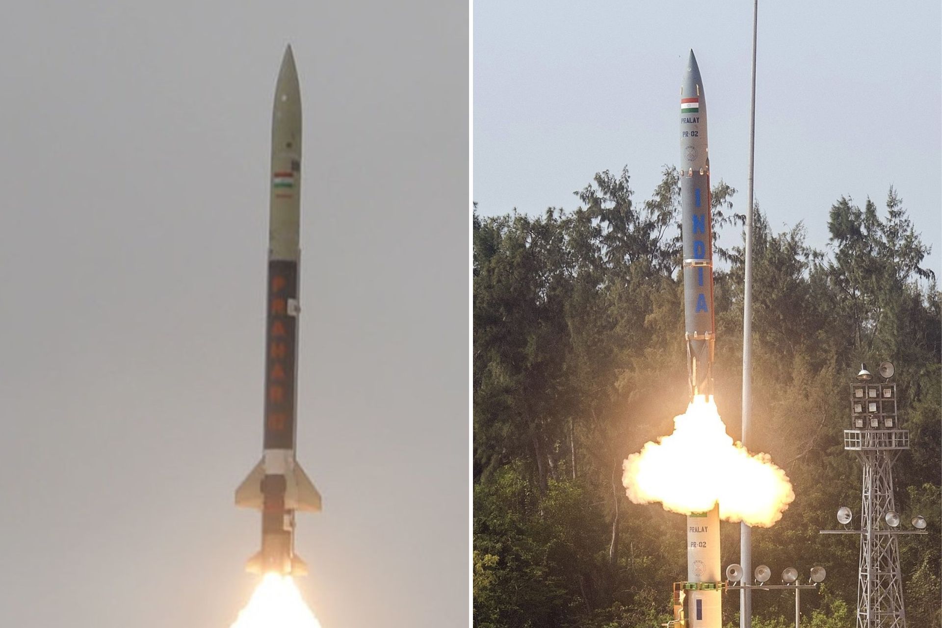 The Indian Prahaar, short-range ballistic missile (left), and the Pralay short-range ballistic missile (right). (Picture source: CSIS/Wikimedia)
