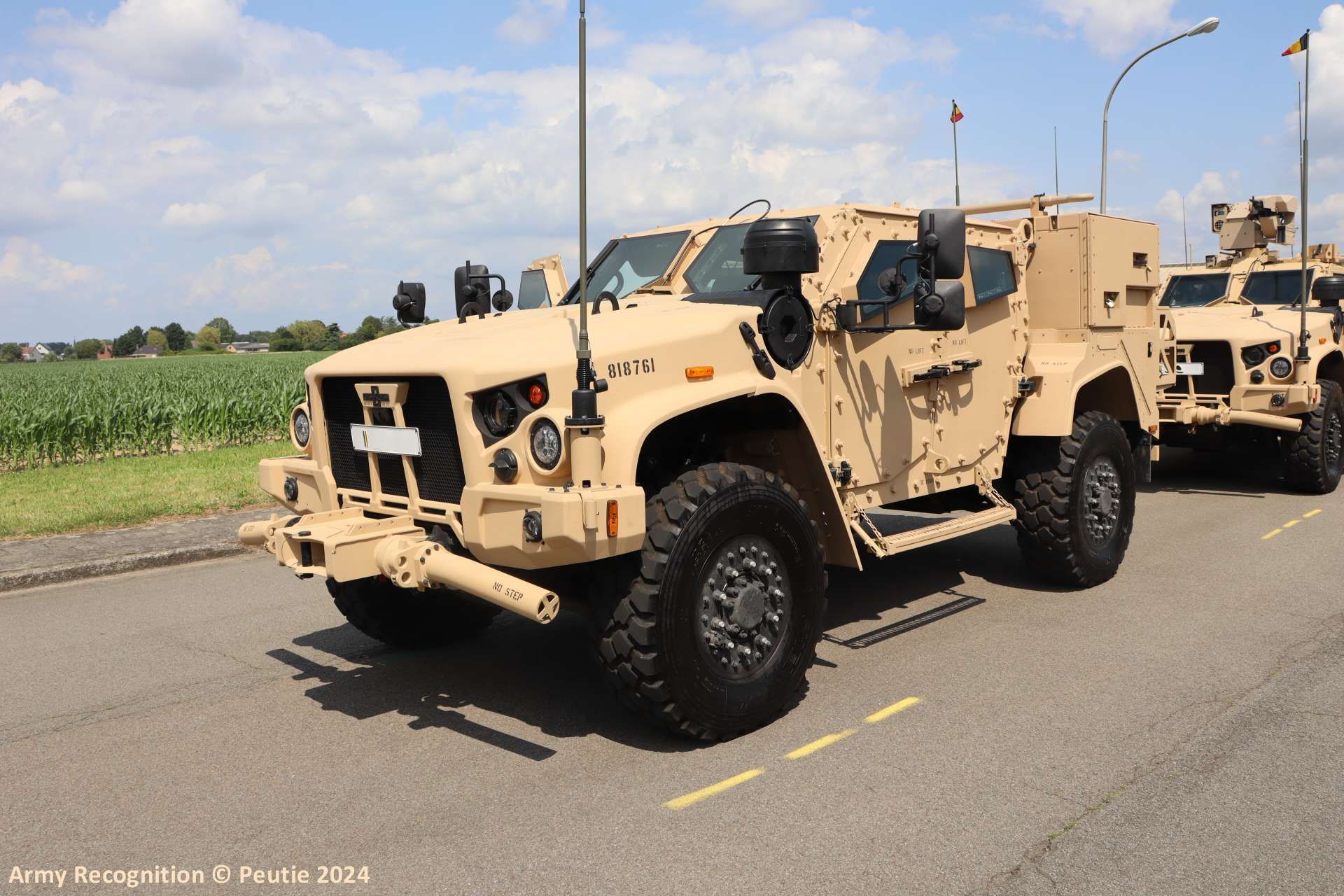 On January 19, 2024, the Bataljon Jagers te Paard - Bataillon de Chasseurs à Cheval, a cavalry unit of the Belgian Army, announced on Facebook that it had received its first batch of new JLTVs from Oshkosh Defense. These vehicles are intended to replace the IVECO Lynx (LMV) vehicles currently in service. The sand color of these vehicles, noted during the announcement, raised questions about whether they would receive removable camouflage stickers similar to those used by the French Army.