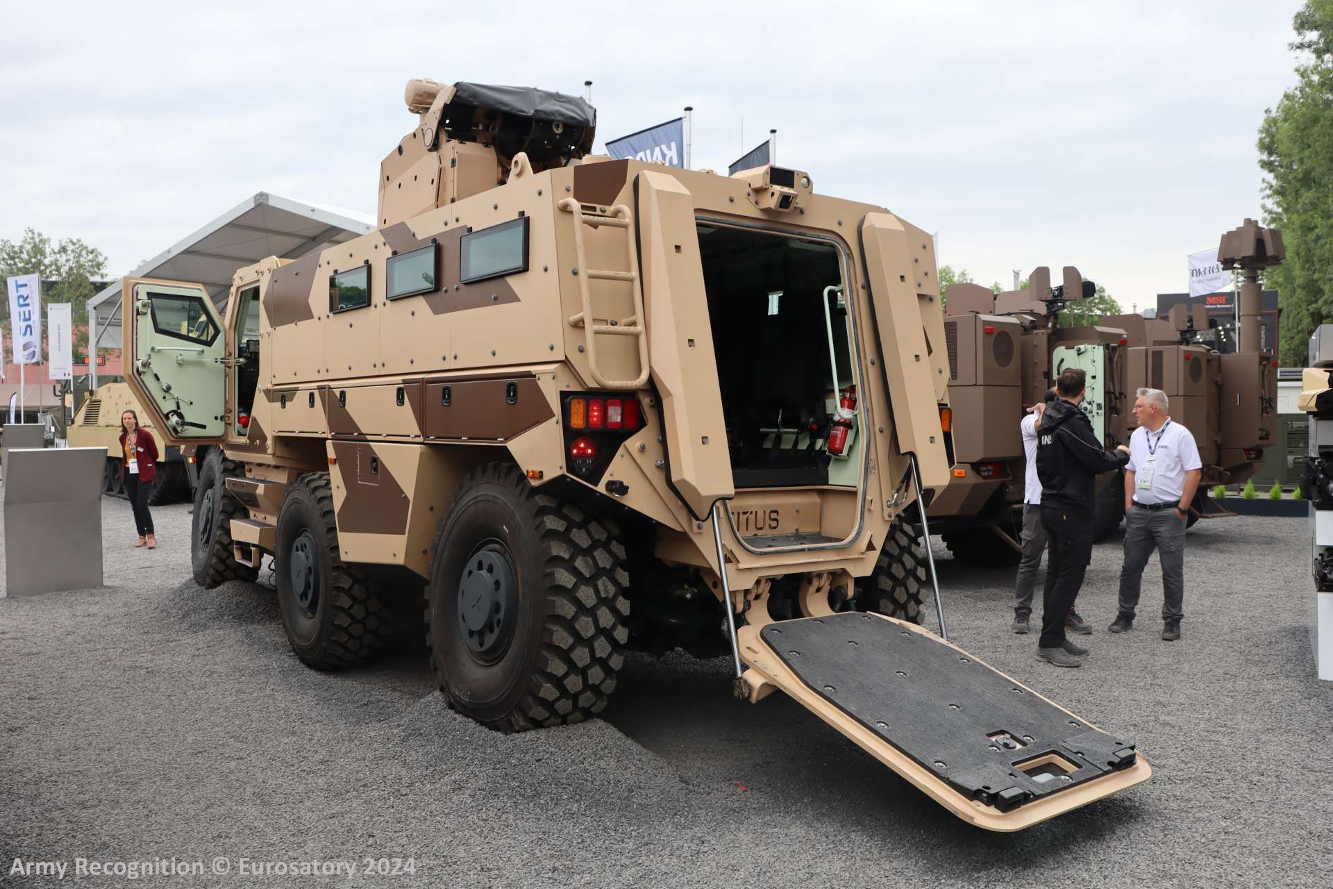 The TITUS (Tactical Infantry Transport and Utility System) is an armored 6x6 multi-purpose vehicle built by Nexter KNDS and Tatra Defence Vehicle (TDV) to address the demands of modern hybrid warfare, including counter-insurgency missions and high-intensity conflicts. The vehicle's architecture provides high mobility and maneuverability across various terrains, such as deserts and urban environments. Its primary mission is to transport infantry squads while offering protection and fire support capabilities.