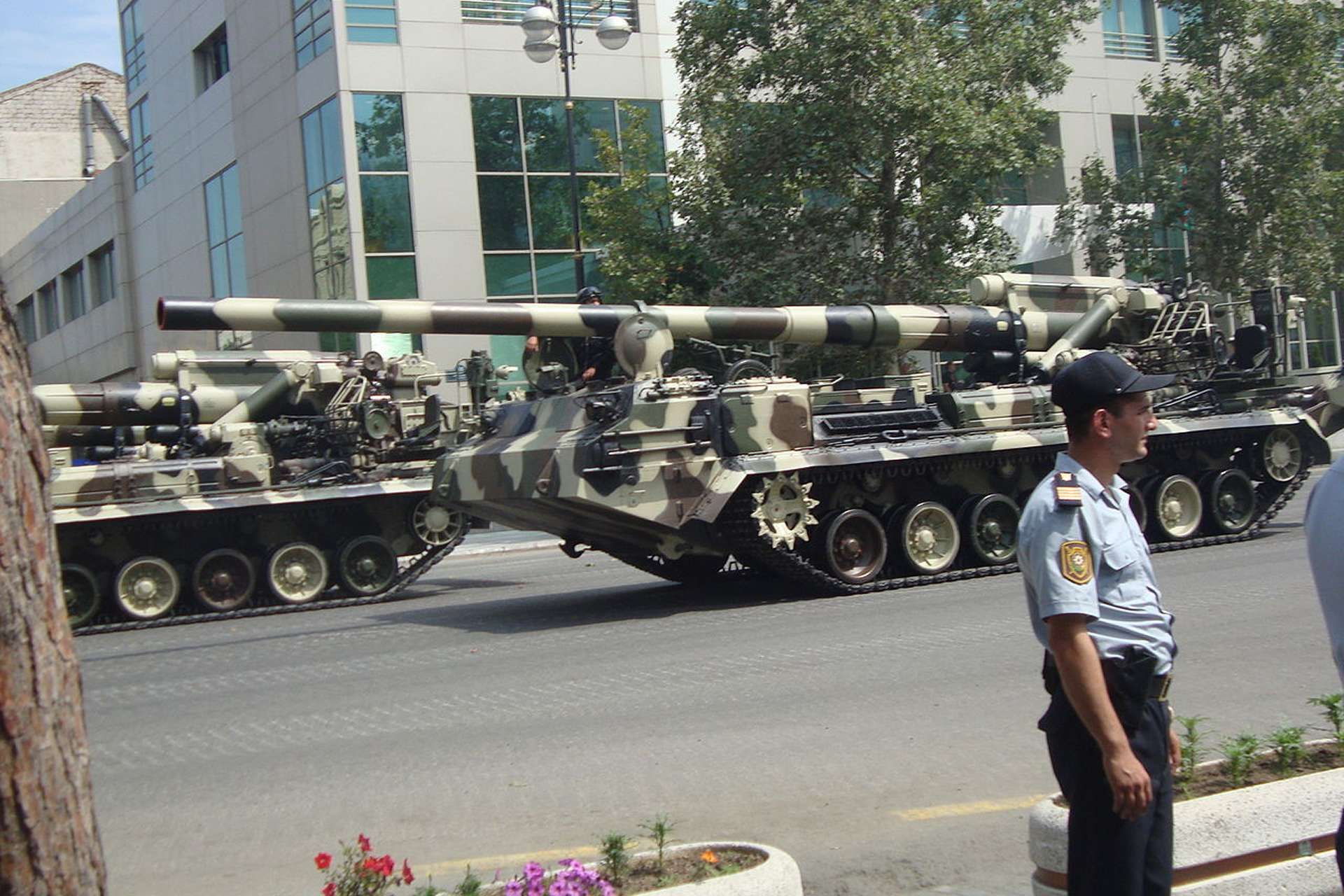 As of 2023, the Azerbaijani Army's artillery inventory includes 1,251 units, including 12 2S7 Pion 203mm self-propelled howitzers. (Picture source: Wikimedia)