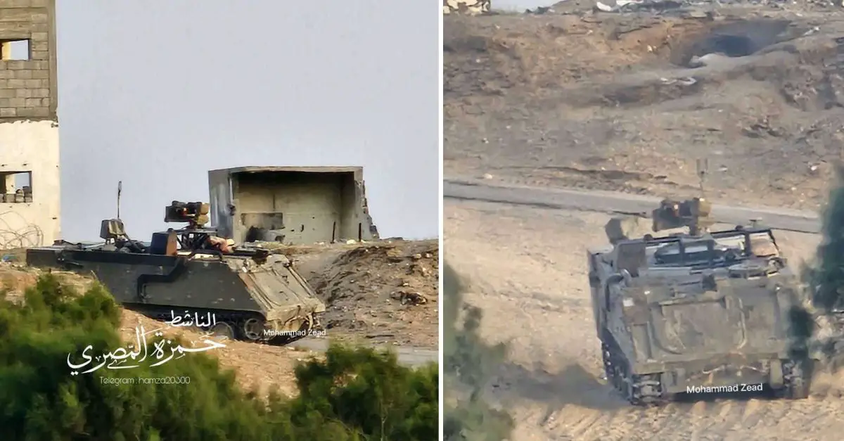 These images are reportedly showing the deployment of remote-controlled M113 armored personnel carriers (APCs) in Rafah by the Israeli Defense Forces in May 2024. (Picture source: Twitter/Gaza War Unit Tracker)