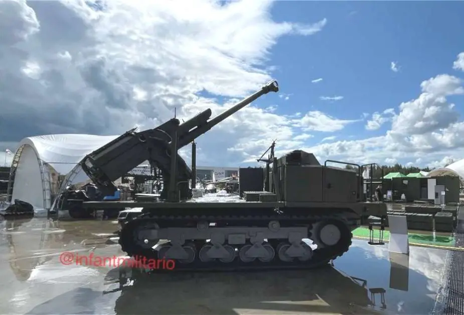 The new Russian-made robotic artillery system is based on the MTS-15 tracked UGV Unmanned Ground Vehicle fitted with a D-30 122mm towed gun mounted at the rear part of the robot. (Picture source Russian Social Network)