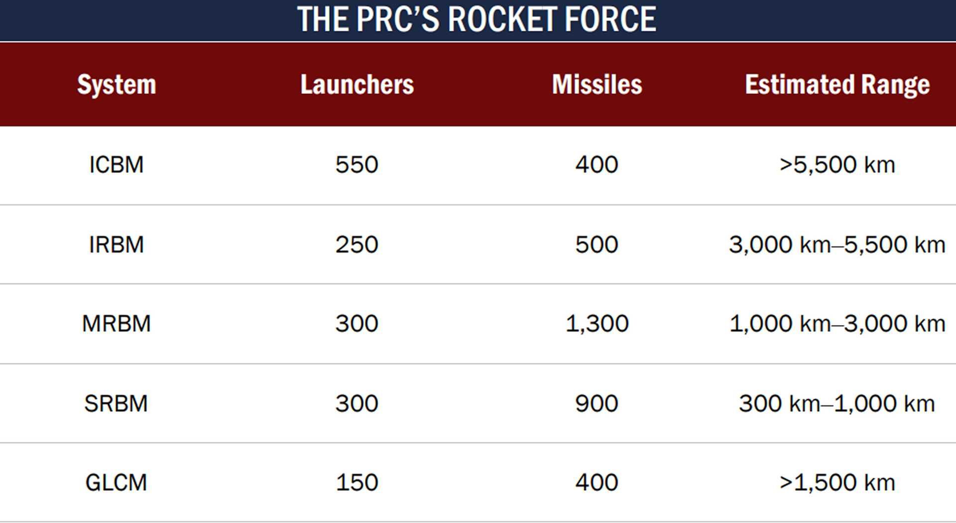 According to the report, China currently possesses a total of 3,100 ballistic missiles under the PLARF's control. (Picture source: US DoD)