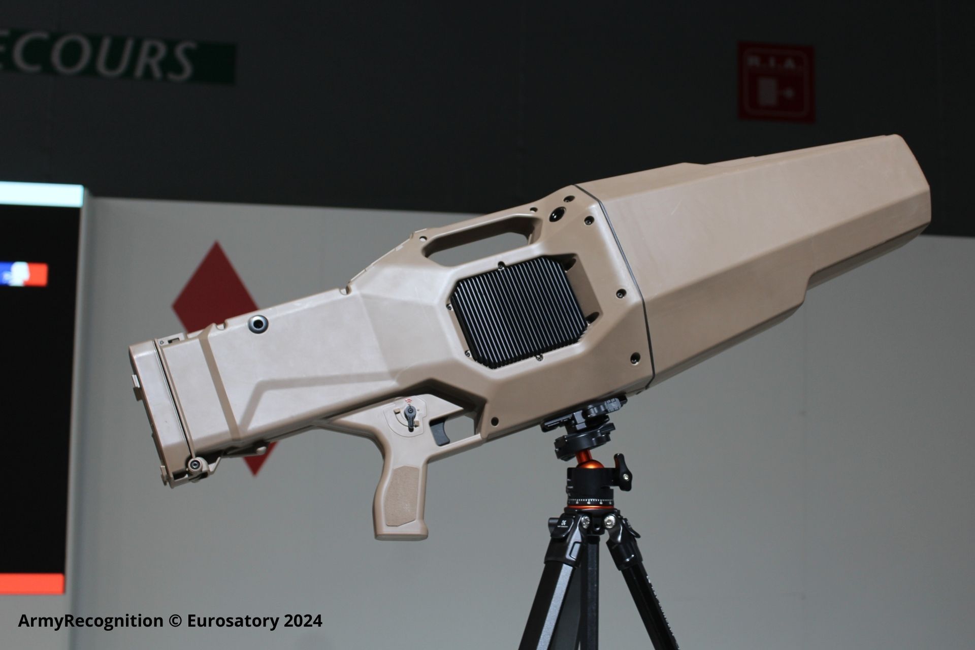 At the Eurosatory 2024 exhibition, the Ministry of the French Armed Forces unveils the NEROD RF, a portable, combat-proven anti-drone jammer manufactured by the French company Mc2 Technologies. This innovative solution addresses the growing threat posed by UAVs, which frequently infiltrate private, state, and military infrastructures. Although UAVs offer benefits in various fields such as agriculture and rescue, they increasingly pose threats in terms of espionage, smuggling, and potential explosive attacks. Follow Army Recognition on Google News at this link