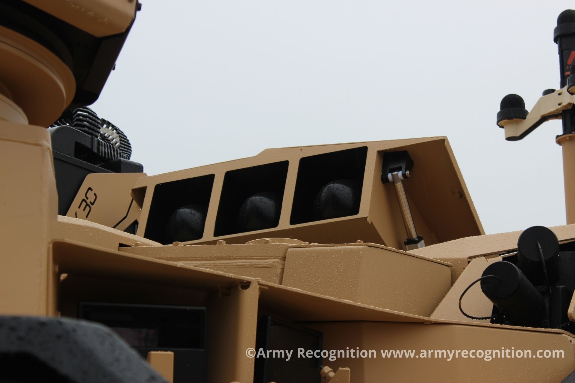 front view of Leclerc evolution turret equipped with Uav jamming system 7,62 machinegun and 30mm anti UAV system (Picture source: Army Recognition)