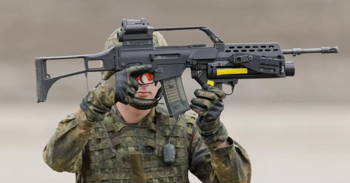 Bundeswehr Soldier showing G36 with 40mm launcher mounted (Picture source: DW)