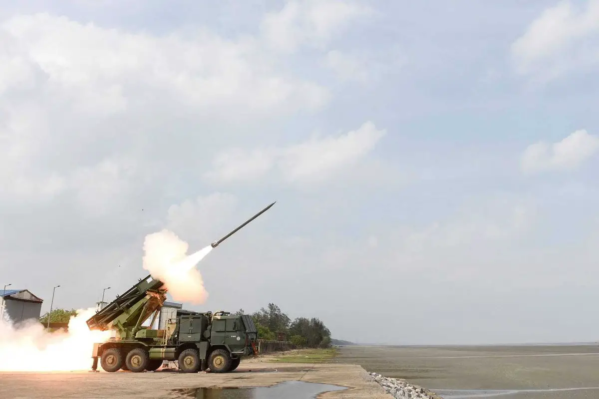 Compared to the original Pinaka MLRS, the Guided Pinaka extends the firing range to approximately 75 kilometers while adding precision targeting capabilities, making it suitable for high-value targets like command centers or fortified positions. (Picture source: DRDO)