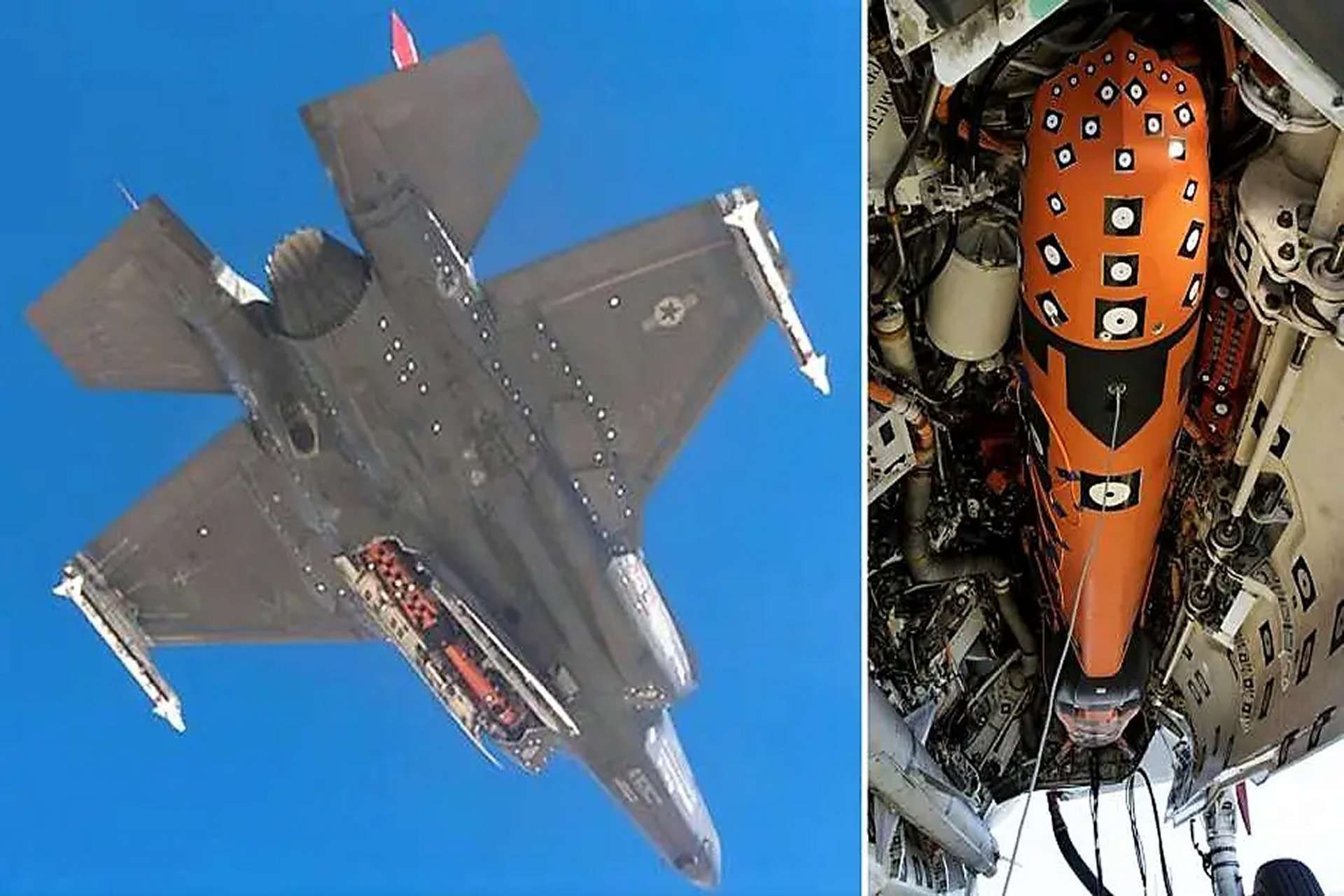Left: first JSM drop test with a US Air Force F-35A in February 2021. Right: the JSM test missile in its weapon bay (Picture source: FMA)