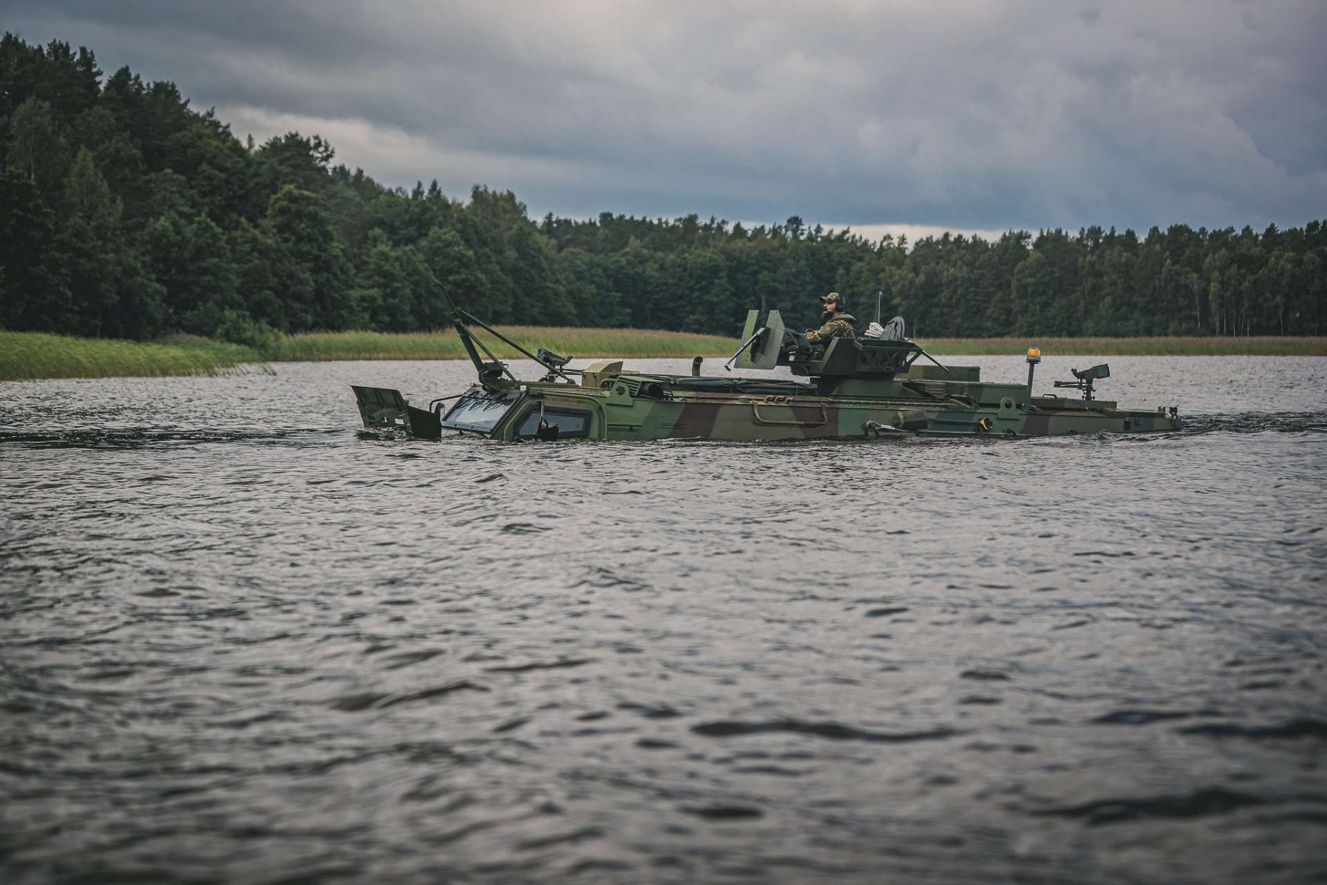 Fully amphibious, the Patria 6x6 can accommodate up to three crew members and ten dismounts, as well as achieving a maximum road speed of 100 km/h. (Picture source: Latvian MoD)