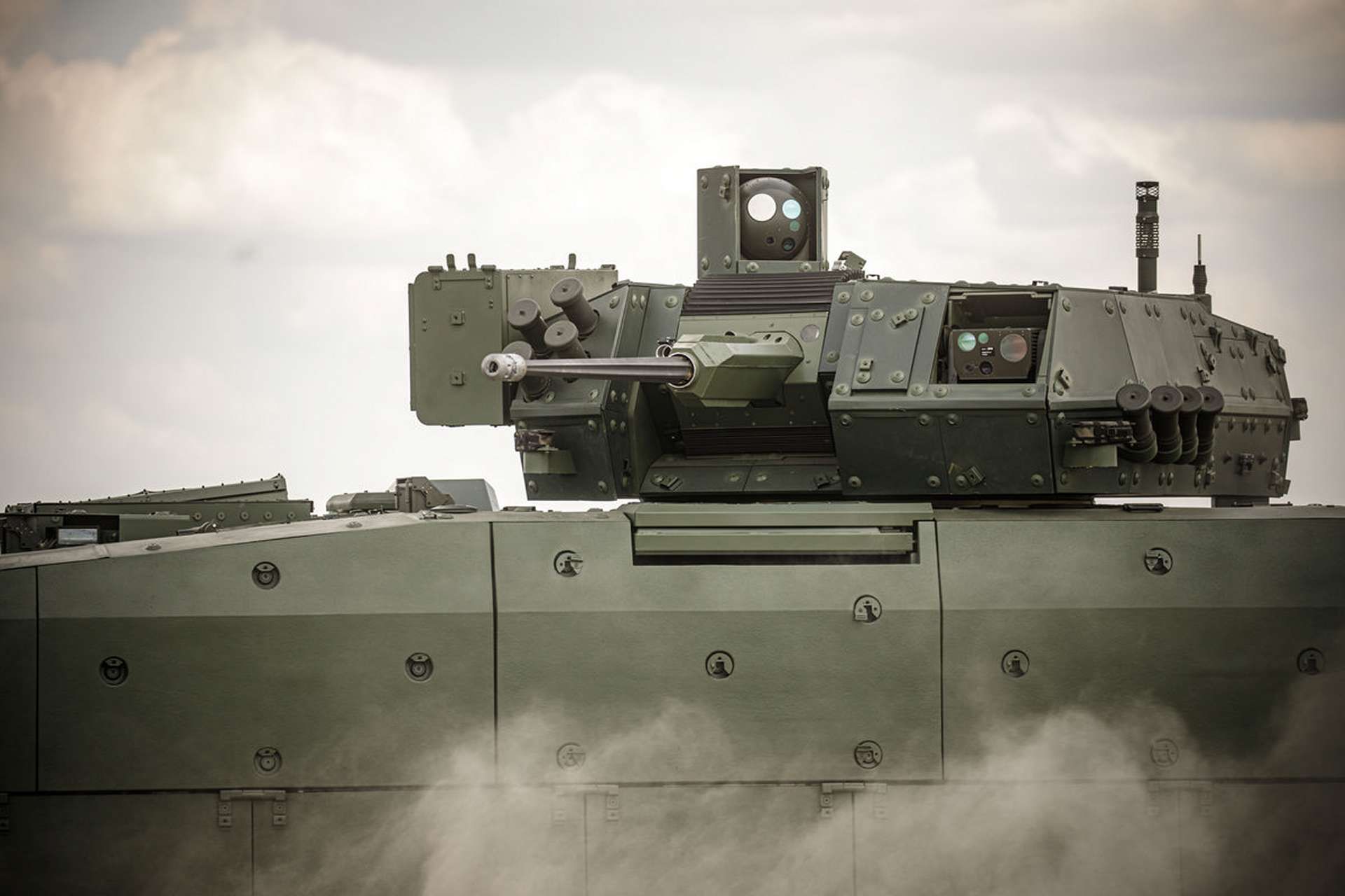 The turret of the Borsuk IFV, also mounted on KTO Rosomak vehicles, includes a 30 mm automatic cannon with a dual-feed system, a 7.62 mm coaxial machine gun, eight smoke grenade launchers, and a dual launcher for SPIKE anti-tank guided missiles. (Picture source: Huta Stalowa Wola)