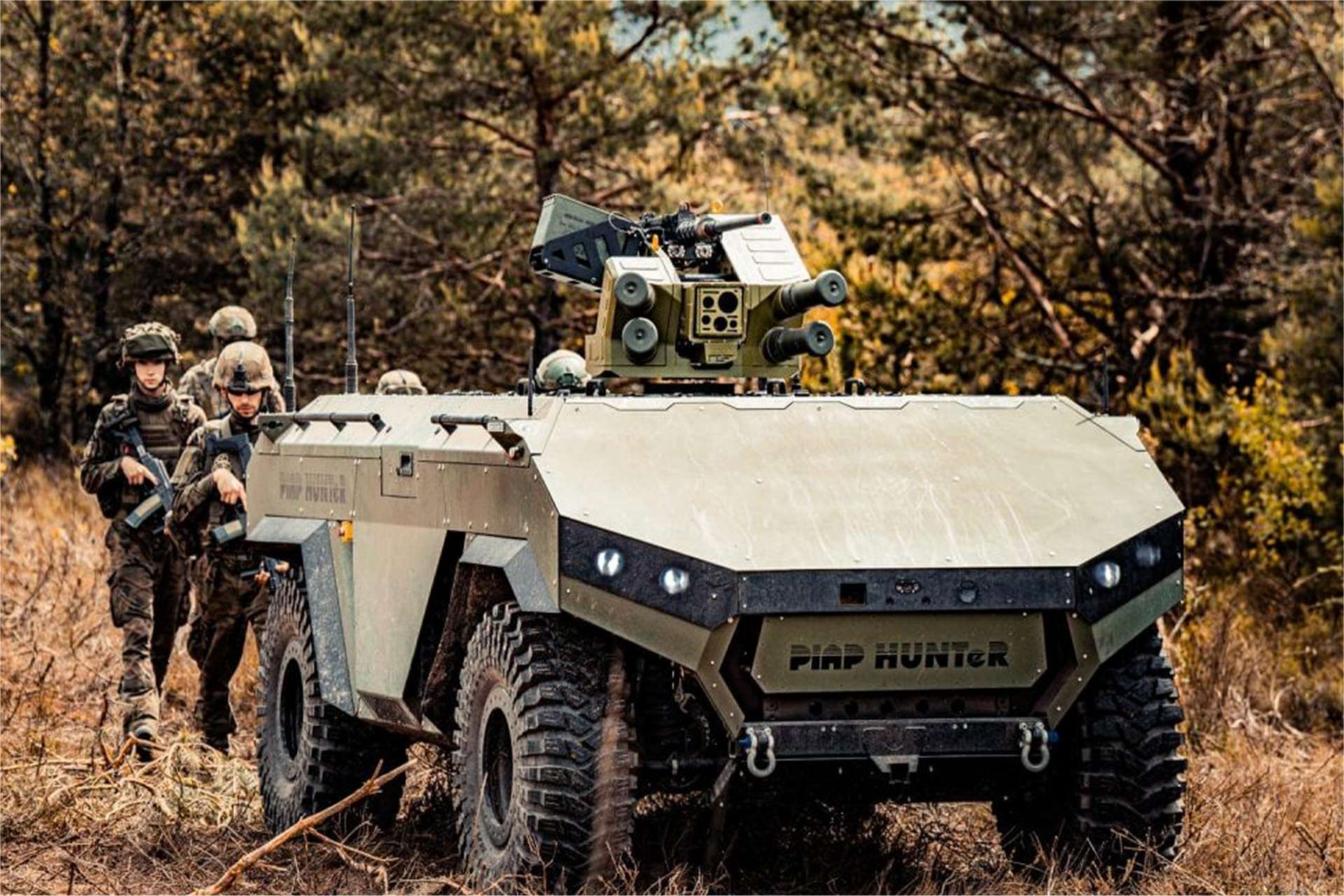 In May 2024, the Piap Hunter unmanned ground vehicle (UGV) was seen during a recent training exercise of the Polish 21st Rifles Brigade. This demonstration highlighted the advanced capabilities of the Piap Hunter in surveillance and rapid response, emphasizing its crucial role in the modernization and enhancement of the Polish Army's security operations. The Piap Hunter, with its high mobility and hybrid systems, is designed to excel in a variety of tasks, ranging from land border protection to the management of critical incidents.