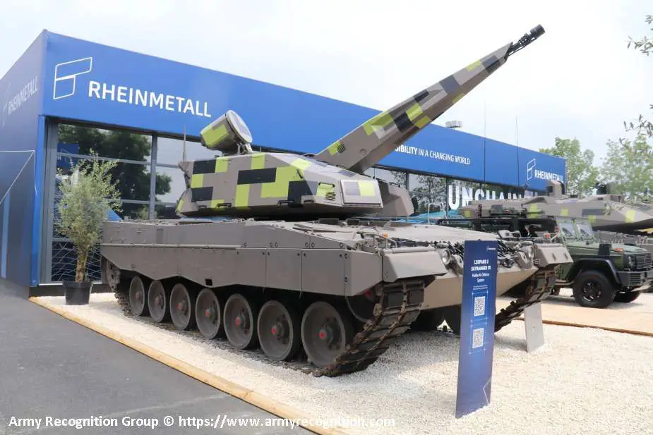 The new mobile air defense system Skyranger 35 turret mounted on Leopard 1 tank was unveiled in June 2024 during the defense exhibition in Paris, France. (Picture source Army Recognition Group)