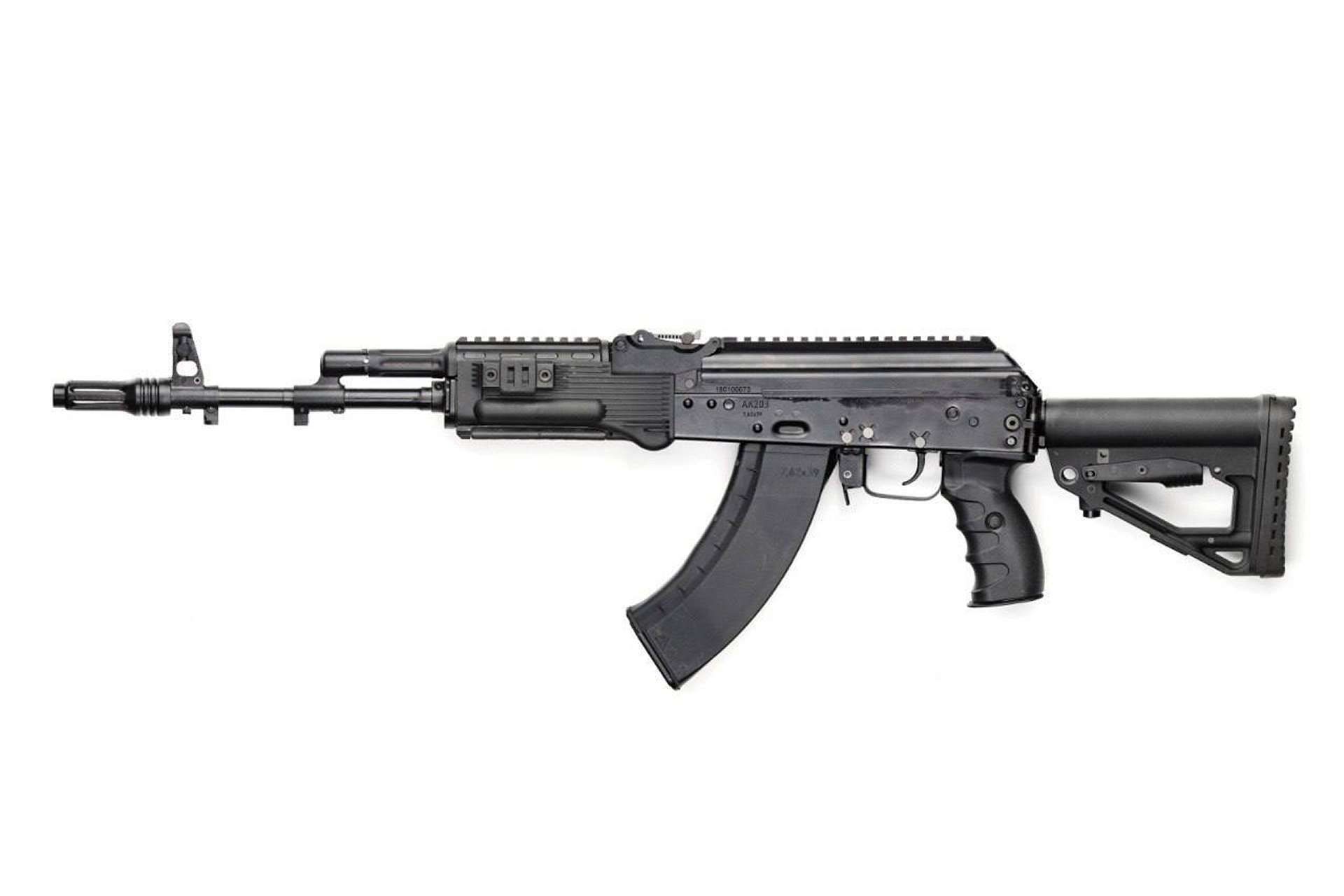 The AK-203 assault rifle is a modern firearm originating from Russia, designed by the renowned engineer Mikhail Kalashnikov between 2007 and 2010. (Picture source: Rostec)