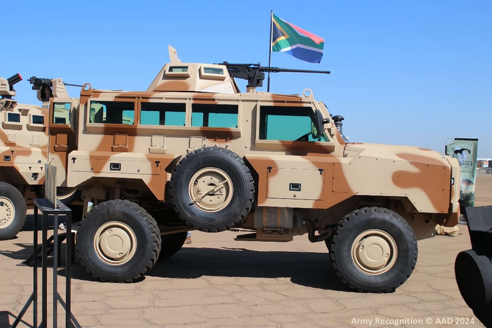 At the Africa Aerospace and Defence (AAD) 2024 exhibition, the South African company Twiga Services and Logistics introduced its new Nkwe 4x4 Mine-Resistant Ambush Protected (MRAP) vehicle at AAD 2024. The Nkwe, meaning "Leopard" in Setswana, was displayed alongside Twiga’s larger Nyati Armored Personnel Carrier (APC). Developed between 2022 and 2024, the Nkwe was qualified in 2024 and is designed for various military and peacekeeping operations.