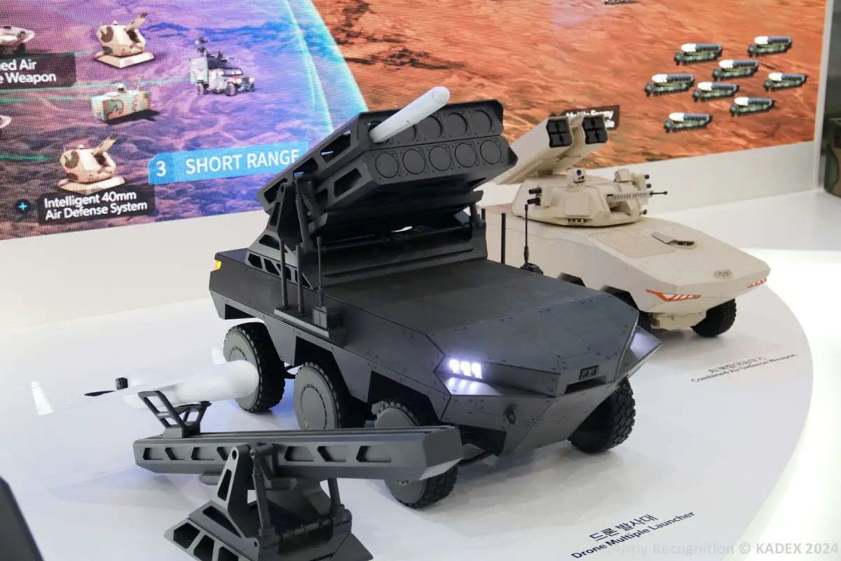 Based on an unmanned search vehicle platform, the launcher enables mission-specific operations (including attack and surveillance) tailored to various targets. Operated remotely under the control of a ground control vehicle, the system can simultaneously deploy drones of different sizes and shapes. It can also be integrated with existing platforms such as the Chunmoo Multiple Rocket Launch System (MRLS) and the L-SAM long-range surface-to-air missile system.