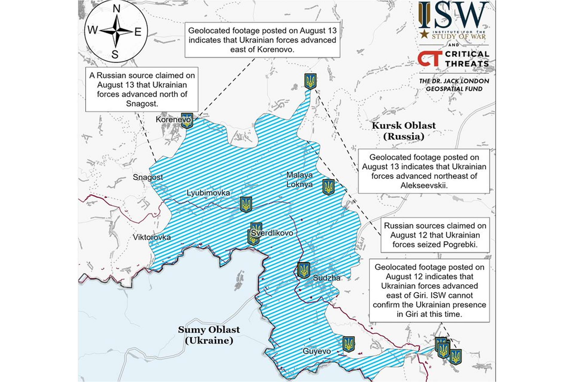 Map of Ukrainian breakthrough in Russia. (Picture source: Institute for the Study of War)