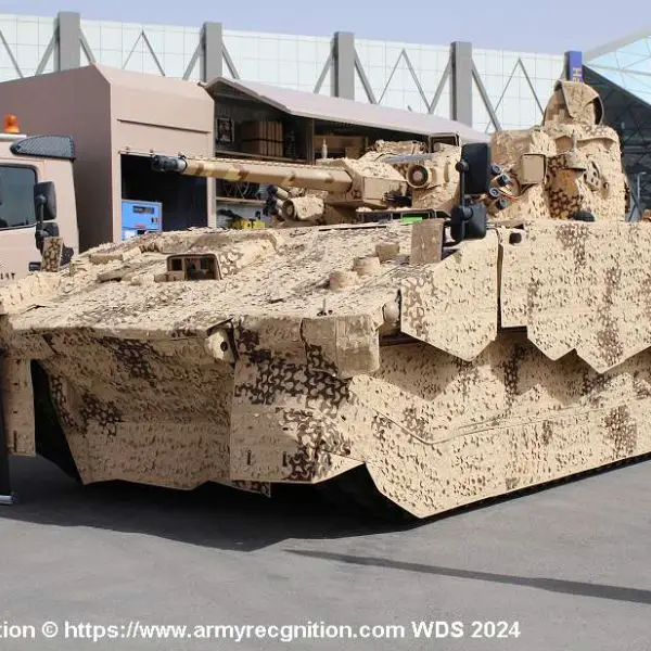 The Ajax, the new British army reconnaissance tracked armored vehicle, debuted on the international stage at the World Defense Show 2024, held in R...