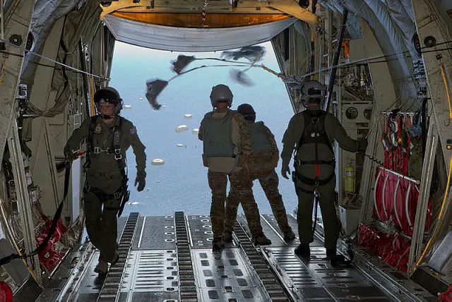 Personnel from Special Operations Command parachute from a C-130J Hercules.Picture: CPL David Gibbs © Commonwealth of Australia, Department of Defence |