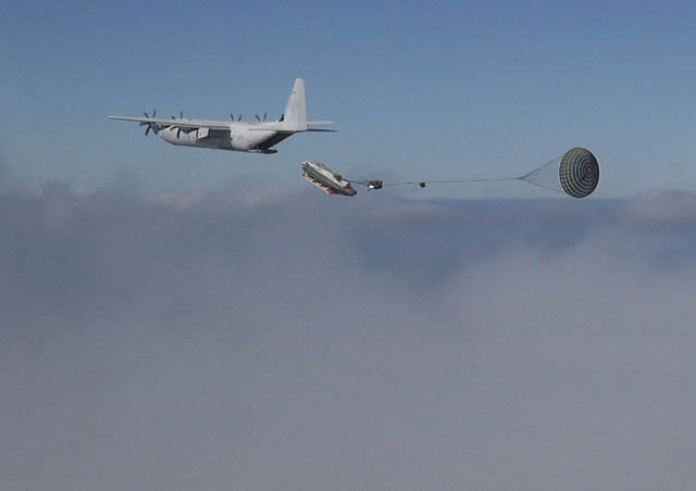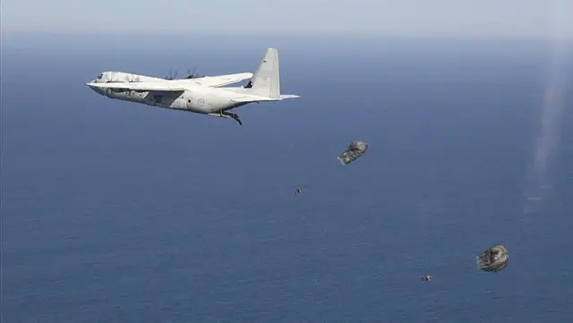 Hercules, as a Zodiac Marine Craft exits the aircraft's cargo bay. Picture: