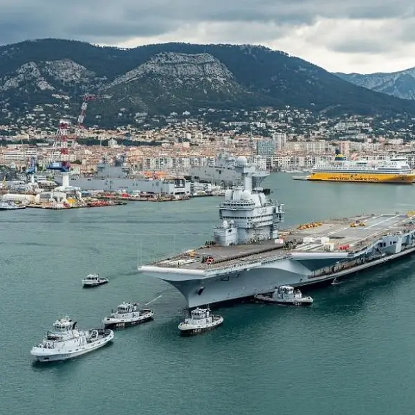 French Aircraft Carrier Out of Dry Dock - Refit Work Continues Afloat
