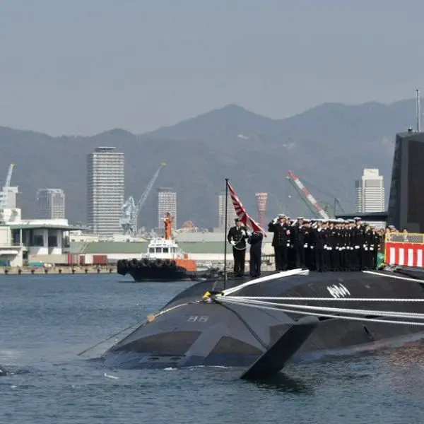 The Japan Maritime Self-Defense Force (JMSDF) commissioned its 9th Soryu-class diesel-electric attack submarine (SSK) in Kobe in Hyogo Prefecture o...