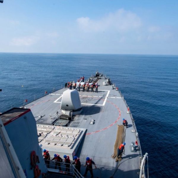 The Arleigh Burke-class guided-missile destroyer USS Porter (DDG 78) and members of Explosive Ordnance Disposal Mobile Unit 8 participate in the fi...