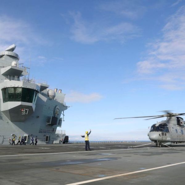 First Merlin Mk2 helicopter lands on HMS Prince of Wales aircraft carrier