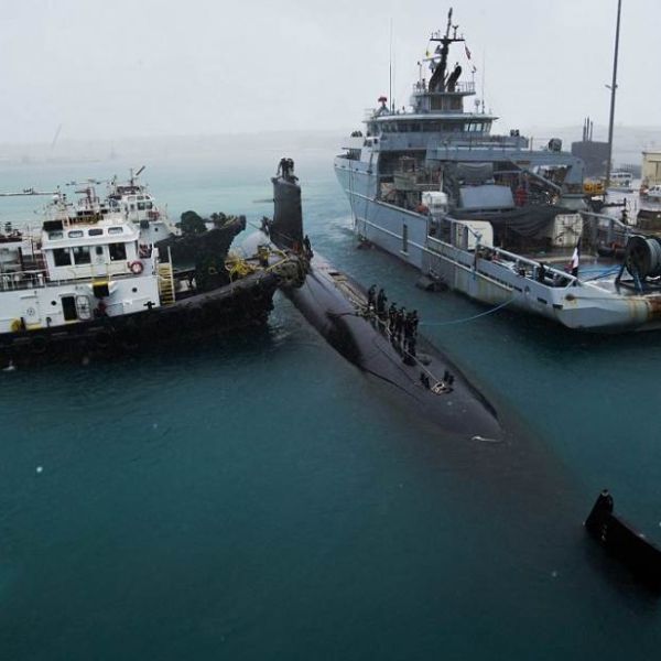 French Navy FS Emeraude submarine and FS Seine support vessel in Guam as part of their long-term deployment