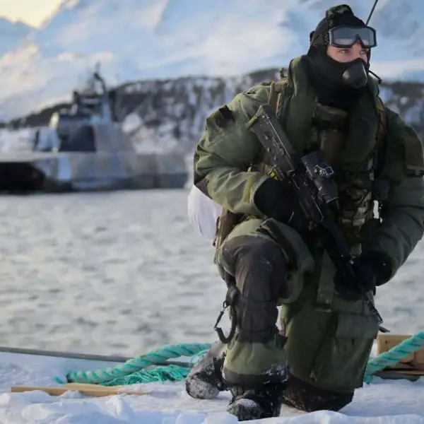 British Royal Marines Commandos train in the fjords of northern Norway in Arctic conditions