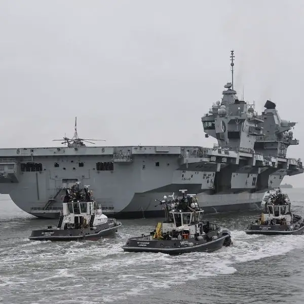 British Navy aircraft carrier HMS Queen Elizabeth sails for F-35B jet trials in UK waters