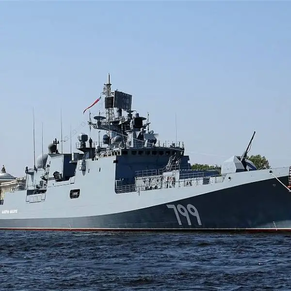 Russian Navy Admiral Makarov frigate conducts air defense exercises in the Mediterranean Sea