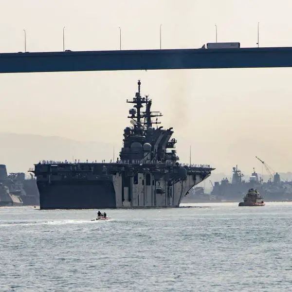 US Navy USS Tripoli LHA 7 America-class amphibious assault ship arrives at its new homeport
