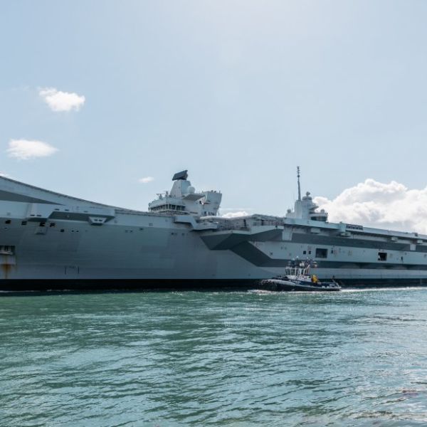 The Royal Navy’s new aircraft carrier HMS Queen Elizabeth has departed Portsmouth, with 820NAS Merlins on deck, for a short-cruise, ahead of traini...