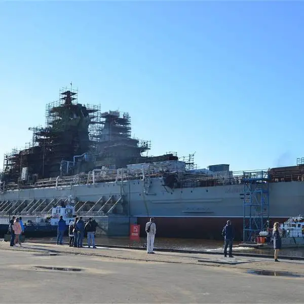 Russian Navy Admiral Nakhimov Kirov-class upgraded nuclear cruiser continues its overhaul