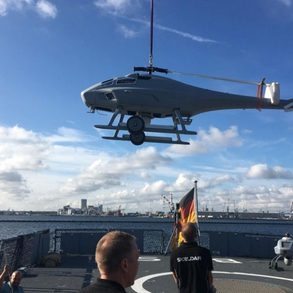 The German Navy has just started at-sea tests of the SKELDAR V200 vertical take-off and landing (VTOL) unmanned aerial vehicle (UAV) aboard the K13...