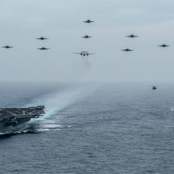 For the first time US Navy Ford-class and Nimitz-class aircraft carriers have operated together at sea