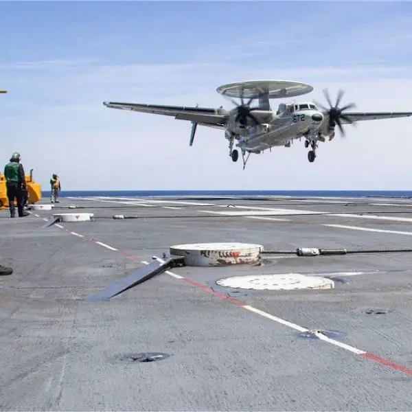 US Navy aircraft carrier USS Gerald R. Ford transition to E-2D Advanced Hawkeye airborne surveillance aircraft