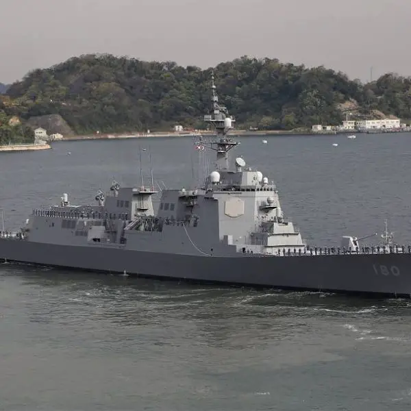 Haguro DDG-180 guided missile destroyer of Japanese Navy to join its homeport in Sasebo
