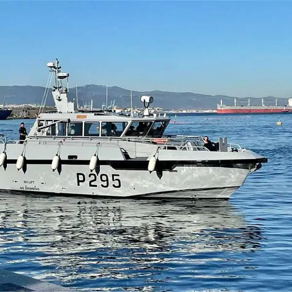 British Royal Navy patrol boat HMS Cutlass arrives in Gibraltar to be tested